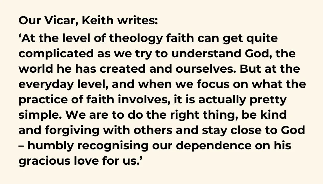 We aim to be a community characterised by a lively and heartfelt Christian faith and, at the same time, an open-hearted, inclusive, approach to the wider community around us.