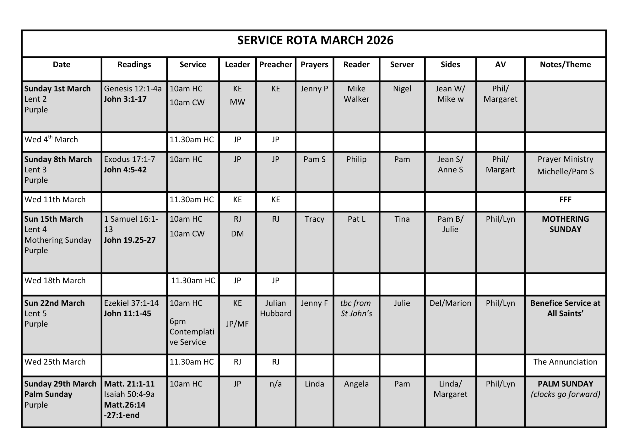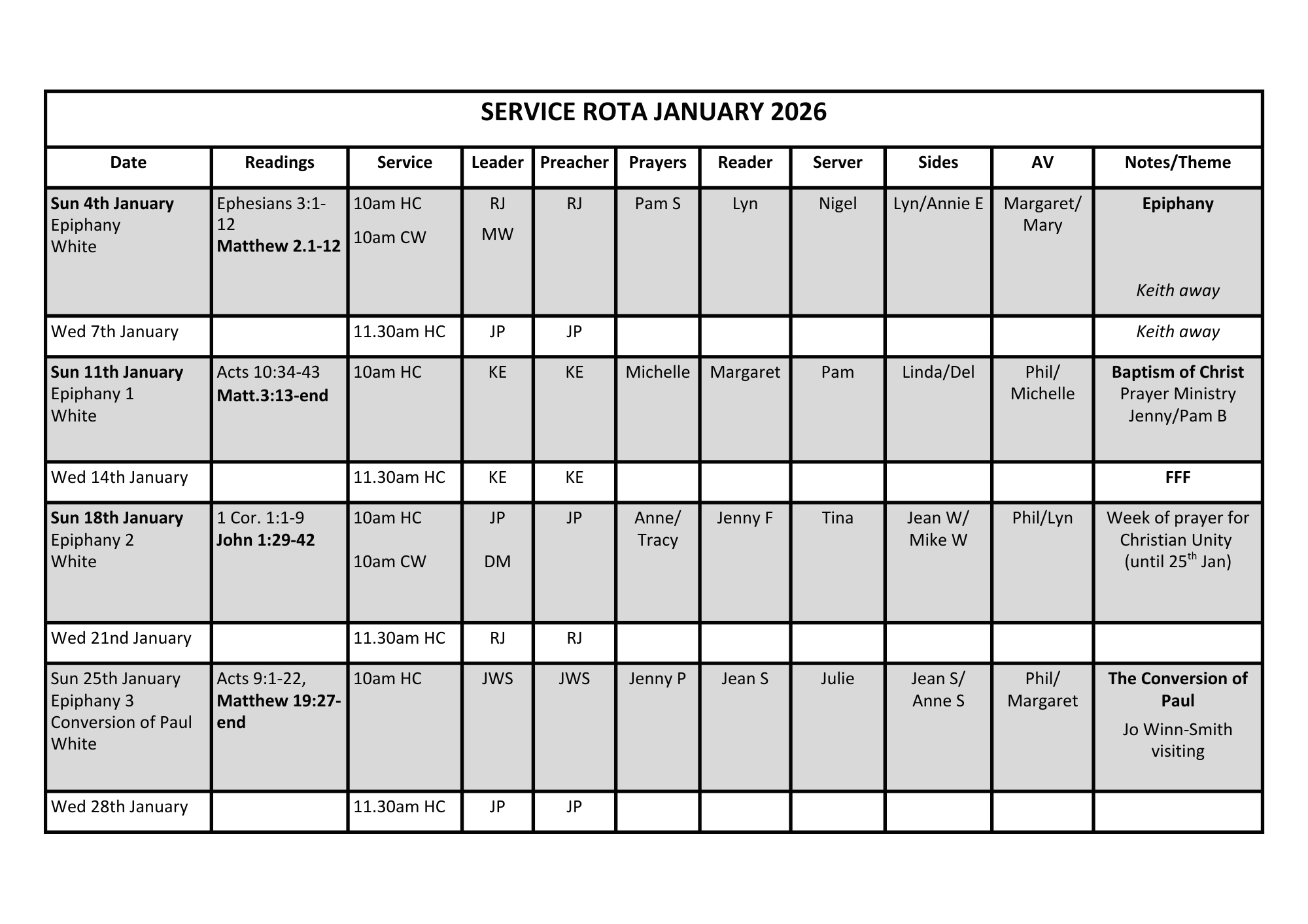 Church Rota