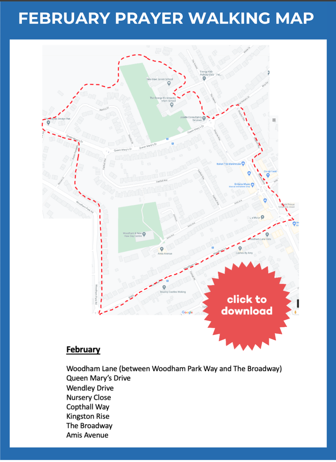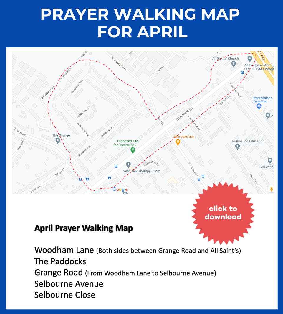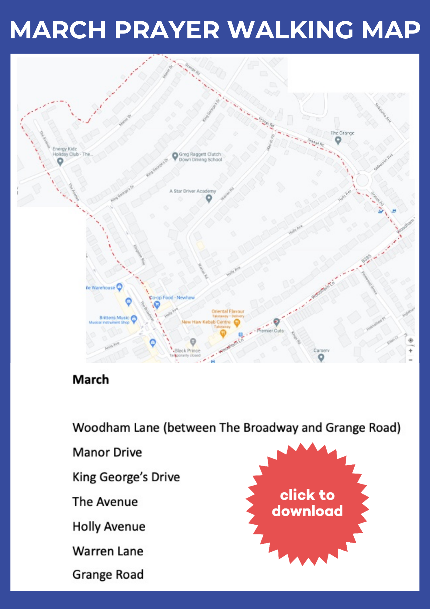 Looking at the parish map, it has been broken down into twelve geographical areas that we can pray throughout the calendar year. Each month we can walk a few streets at a time, or the whole area, and pray God's blessing as we go. Also we can be attentive to what we can see, hear and sense as we walk and of course to God's voice too, through the Holy Spirit, He may just want us to pray for specific things as we walk.